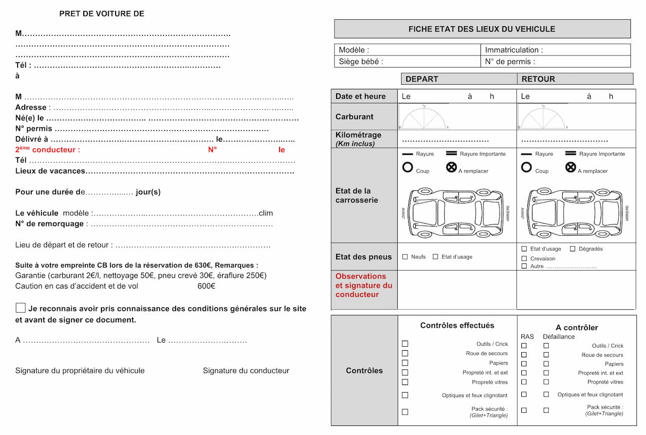 - Document de prêt de voiture rempli complètement et signé par le propriétaire et le conducteur et surtout à droite (Livraison/Retour)